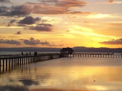 Bone Beach is located about seven kilometers south of Ereke. Here there is a long stretch of sandy beach with an open view to the west. The most popular time to visit Bone Beach is the last hour of the day, when people come to stroll along the pier or beach under a beautiful sunset sky.