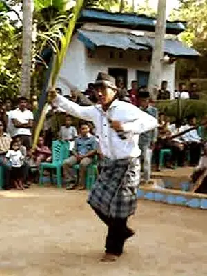 Pomaani adalah semacam tarian perang yang ditampilkan secara perorangan diikuti dengan kendang dan gong besar. Dengan gerakan memutar setiap pemain masuk kedalam lingkaran yang dikelilingi oleh penonton dengan teriakan sambil mendemonstrasikan kemampuannya dalam memainkan pedang panjang di tangan yang satu dan tangan yang lainnya memegang daun kelapa sebagai simbol perisai.