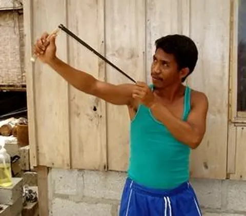 Boys use slingshots to hunt birds, which are sometimes eaten.